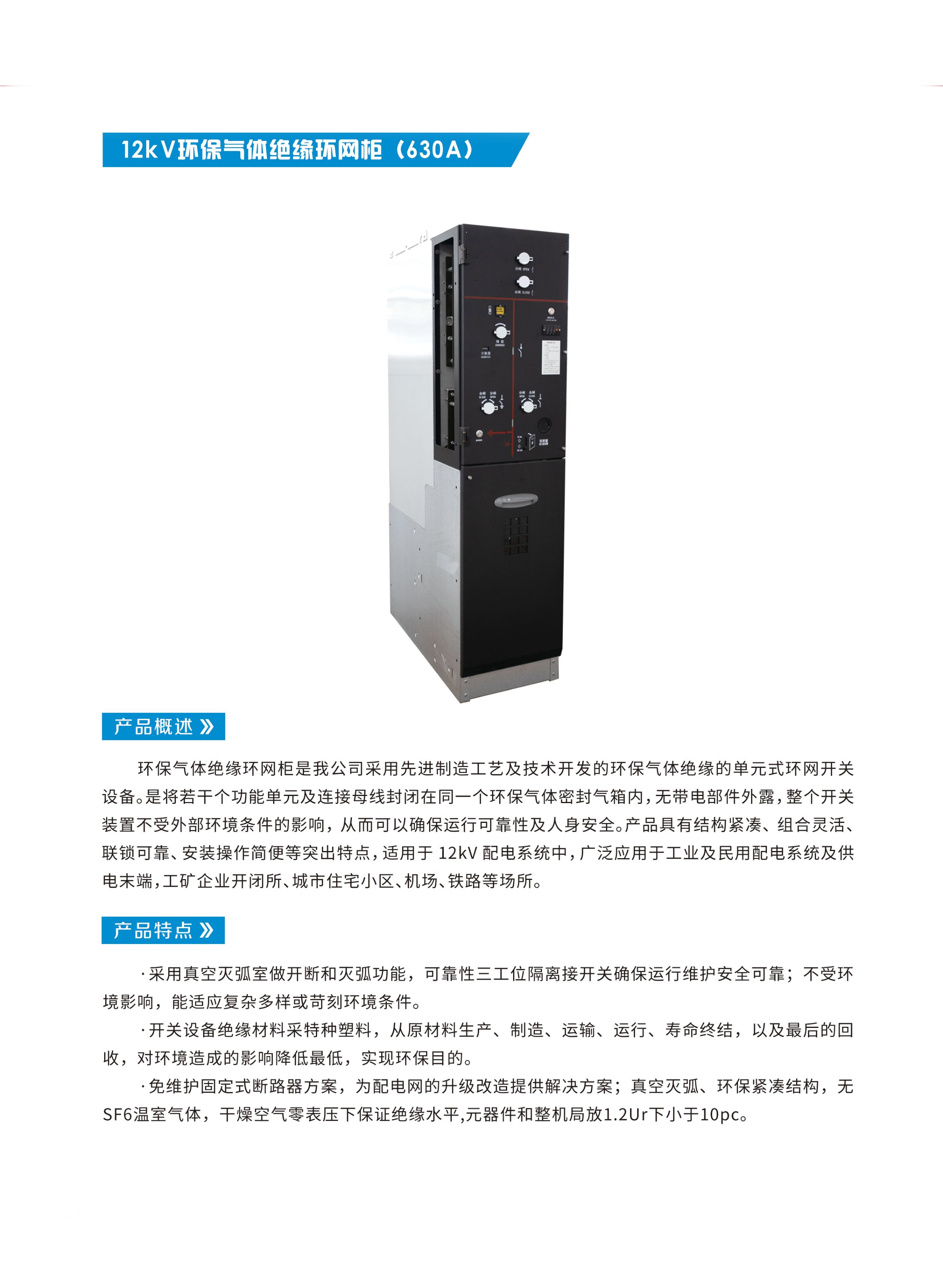 12kV環(huán)保氣體絕緣環(huán)網(wǎng)柜(630A)